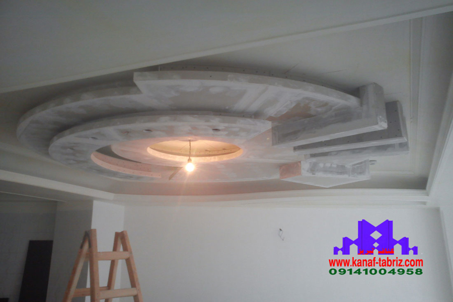دور چراغ کناف طرح گلکار در حال بتونه کاری